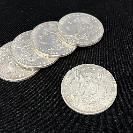 Cupronickel Morgan Dollar Shell and Coin Set (4 Coins 1 Shell) by Oliver Magic